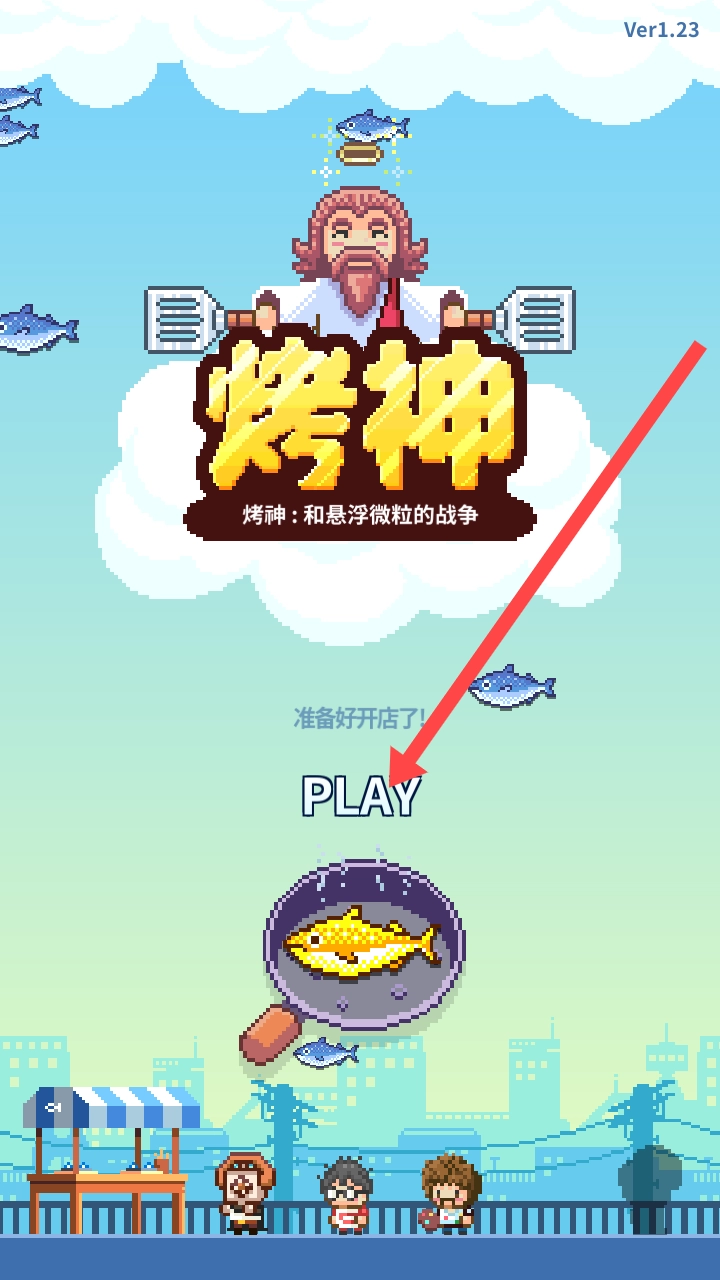 在初始界面点击“PLAY”按钮,就能进入游戏主场景,开启你的烤鱼店铺经营之旅,开启一段轻松愉快的游戏旅程吧。