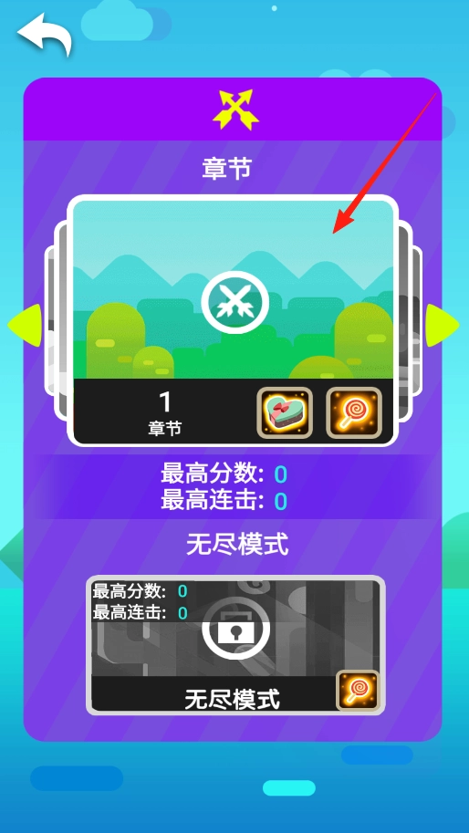 进入游戏的选关界面后,你会看到章节关卡和无尽模式两个选项。要是想玩章节关卡,直接点击章节区域里的“1章节”就能进入第一关,然后就可以开始闯关获取分数、练习连击了。