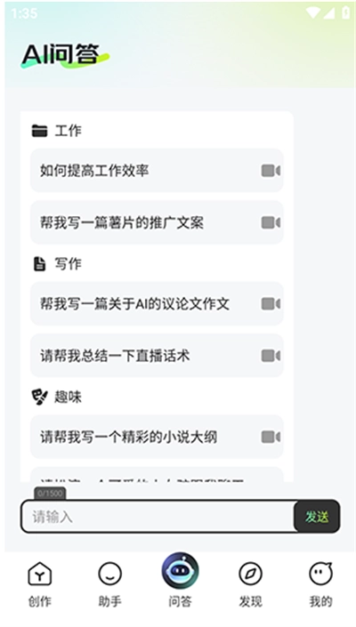 在问答页面,输入你想了解的内容,直接发送就能获取回答。