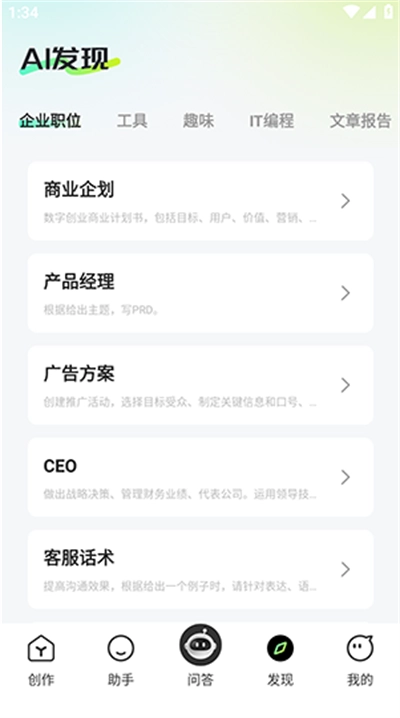 点击进入发现页面,就能看到论文降重、编程辅助、文本浏览器等更多功能。