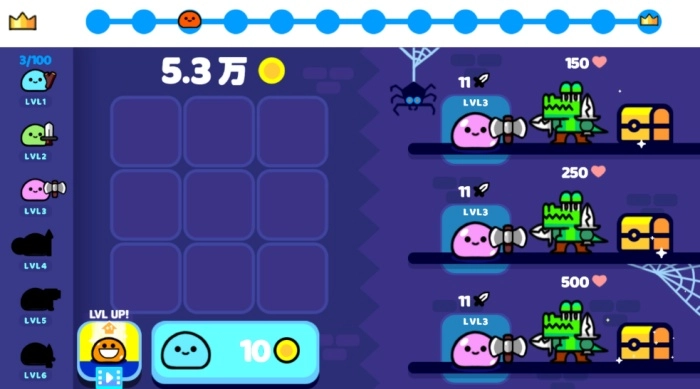 游戏运用物理碰撞合成的机制,玩家能够通过指尖拖动史莱姆来完成碰撞合成操作。