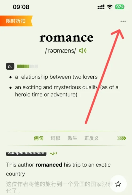 首先打开无痛单词应用,在主界面的右上角找到并点击【...】这个功能菜单。