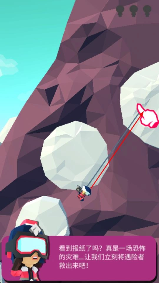 按照指引,借助绳索在山体、雪球等障碍物之间移动,实施救援行动,目的是解救遇险者。