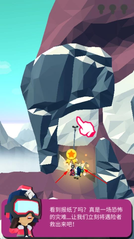 在移动的过程中收集星星之类的奖励,与此同时避开或者处理山体、雪球这类阻碍,保证救援能够顺利开展。