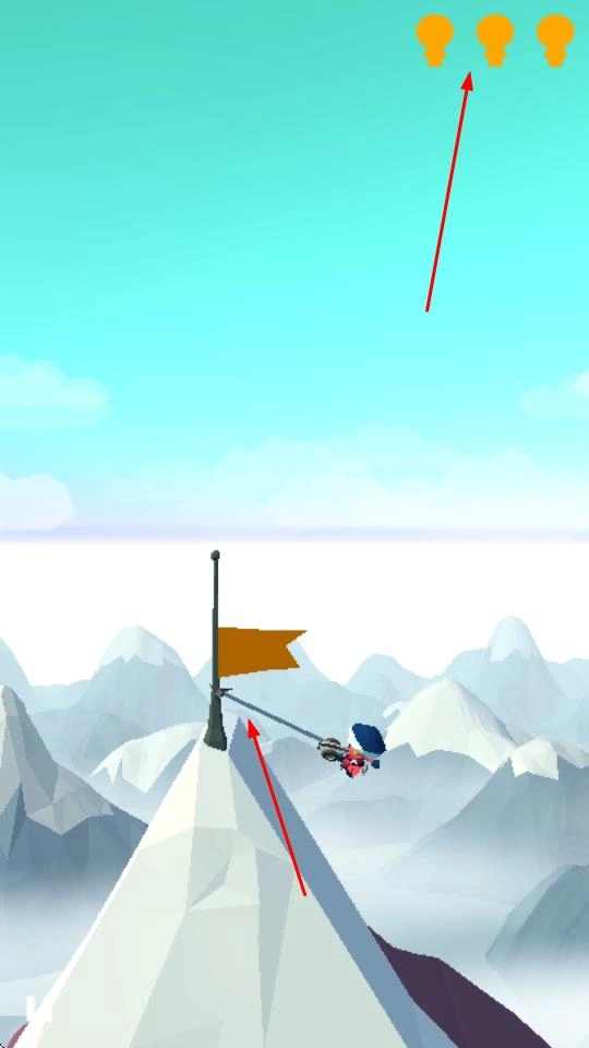 朝着山顶那面旗帜的方向前进,尽力抵达山顶;行进过程中请留意上方灯泡形状的标识,它或许和任务进度有关联。
