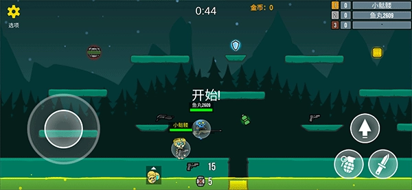 游戏启动后,通过轮盘操控角色移动,点击屏幕即可进行射击。此外,还能拾取场景上方的各类装备,借助这些装备来战胜对手。