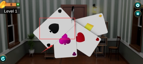 踏入第1关密室,映入眼帘的是悬浮在空中的扑克牌。玩家需要仔细留意牌面的细节之处,同时观察整个房间的环境布局,从中找寻与扑克牌存在关联的线索——比如不同的花色、扑克牌之间的位置联系等。解开这个牌阵谜题后,就能打开房门,继续挑战下一关。