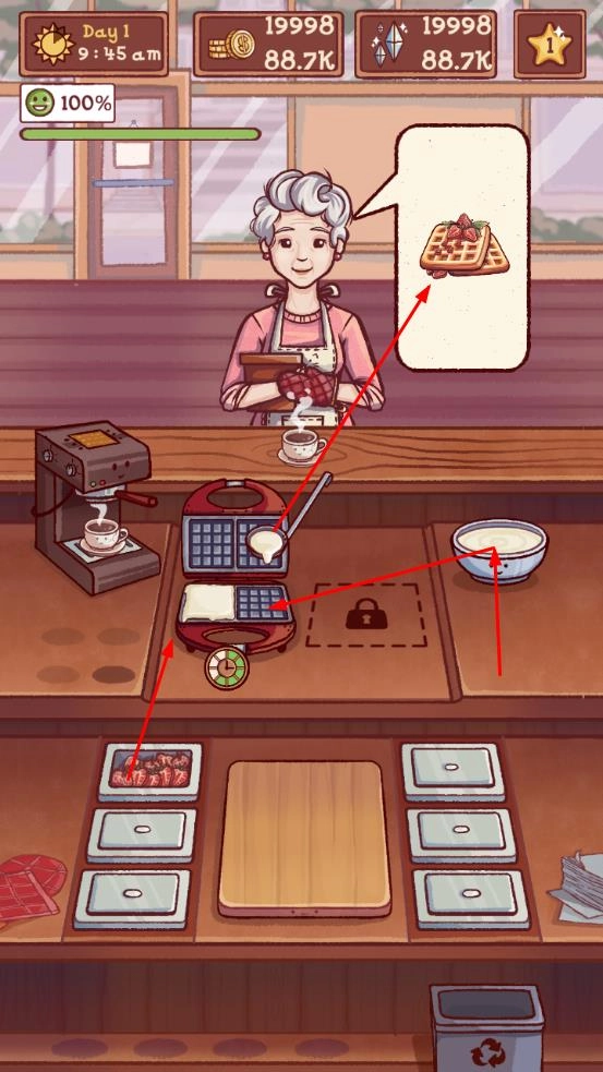 依据顾客的具体需求,选用对应的厨具与食材,烹制出华夫饼等顾客期望的美食,以此满足顾客的需求。