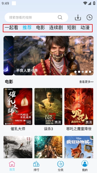 打开应用后可以看到首页设有多个分类频道。