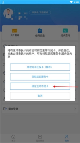 选择【绑定玉环市民卡】。