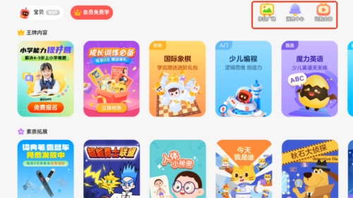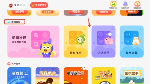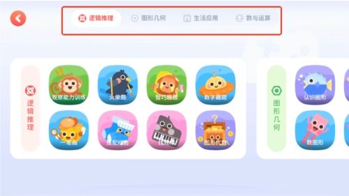 然后就是一堆课程了,可以向右滑动或向下滑动来查找课程,下面以思维益智栏目为例。