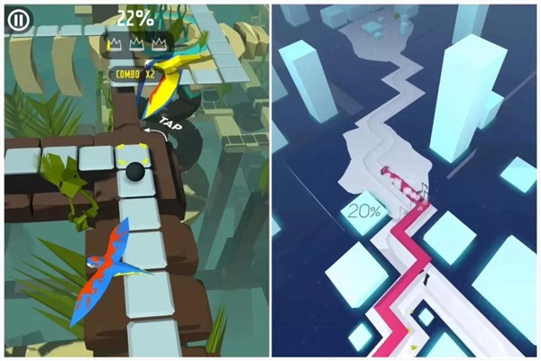 首先,《跳舞的球》的路径是固定唯一的,仅在出现拐点时需要点击操作;而《跳舞的线》则没有限定唯一路径,玩家走过的路线会被舞线记录下来,自由选择的空间很大,部分节奏点甚至提供两条路线供选择,并且玩家只能在游戏过程中不断摸索、寻找节奏。