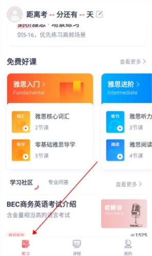 查看距离考试的时长,首页会实时展示距离考试的倒计时提醒。