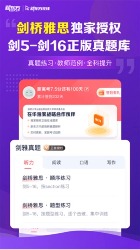 一提到雅思备考,人们往往会想到剑桥雅思真题,这些真题一直深受考生青睐。新东方雅思Pro作为一款备考软件,提供了海量的剑桥雅思真题,适用于成年人、学龄前儿童以及中小学生。该软件包含剑桥雅思独家授权的正版听力和阅读真题,还有口语、写作的考场真题,此外还提供外教口语高分答题范例、典型案例以及新东方专业老师撰写的高分范文。平台每天都会更新部分免费雅思课程,同时提供大量试题及详细的答案解析。