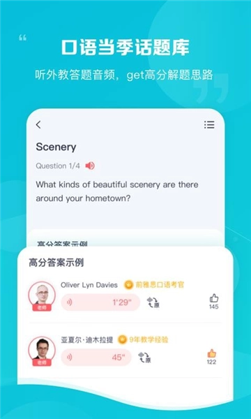 进入口语的专区,查看考试的问题以及高分的答案示例