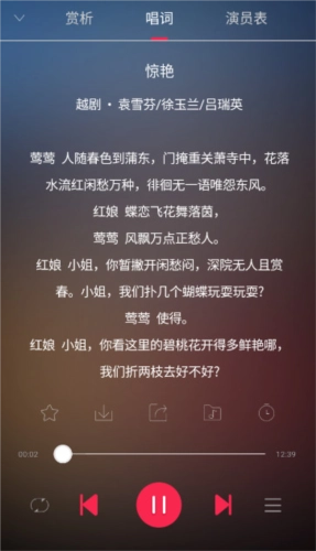 专注于戏曲领域的专业内容,听戏平台为您呈现精准的唱词文本,搭配专业的戏曲赏析解读,助您在聆听戏曲的过程中,深入了解并学习戏曲背后蕴含的故事与文化内涵。
