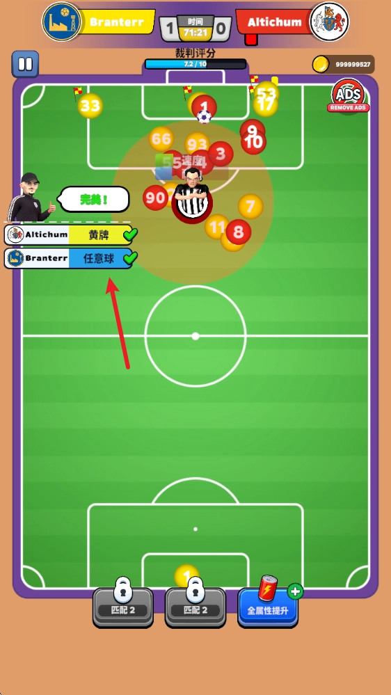 你的判罚会得到双方教练的评价,尽量去做到完美。