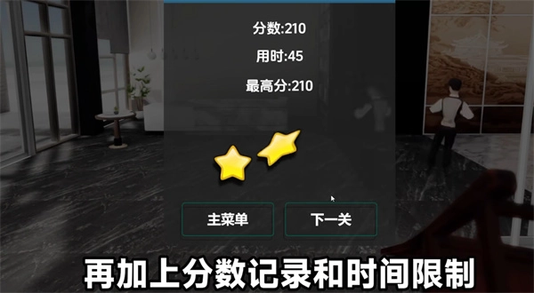 游戏包含多个关卡,难度会逐步提升,具体表现为管家数量增多,移动速度也随之加快。