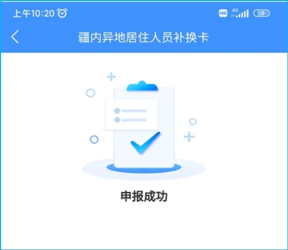 如果申请人不需要更换系统中的照片,可直接点击图(5)所示的保存按钮,完成补卡申请操作,应用程序将展示图(7)所示画面。至此,补卡申请提交成功。