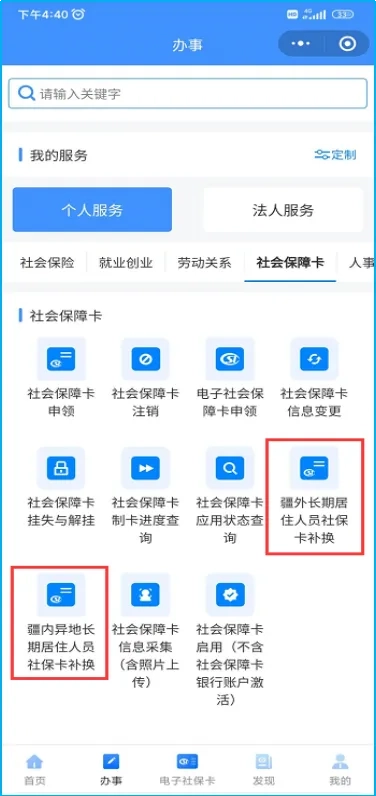 2.社保卡补换数据提交(本文档以“疆外长期居住人员社保卡补换”为例,说明补换卡的具体流程)