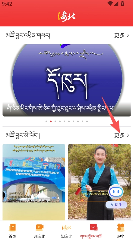 进入藏文内容板块后,点击“更多”选项,即可浏览本地特色资讯,领略海北独特的风土人情。