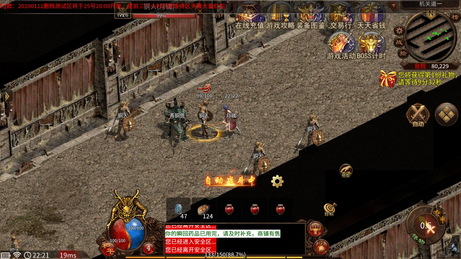 君天复古,176复古三职业传世版本,长周期复古服,60天左右开放一次新区,战神装备为顶级装备,并且只可以打怪获得!游戏会根据大家的进度合理的去开房地图,让所有玩家可以保持在同一起跑线,公平公正,人人都有机会逆袭!不仅如此,本服内还有每日王城任务,可以免费获得海量的经验,提升等级非常的迅速!正式开区之后,达到一定等级即可获取金币和绑元奖励,等级抵御排行榜第一的还能获得一定的打怪经验,让所有人都机会到顶!