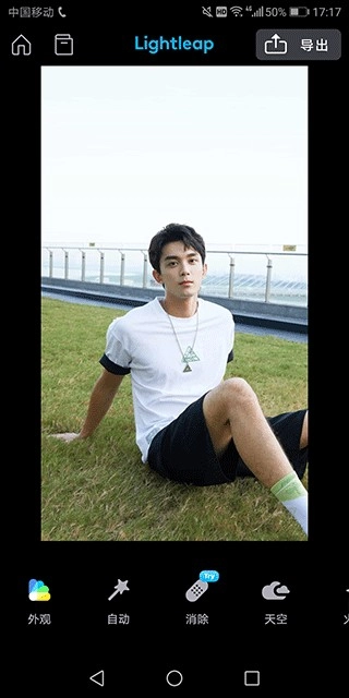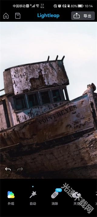 打开lightleap后,先选中要处理的图片并导入,接着就能看到软件里有多种修改功能,包括外观、自动、滤镜和调整等。