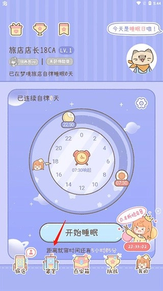 睡眠打卡成功后即可获取奖励,用户还能够经营属于自己的梦境旅店。