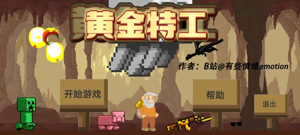 黄金特工这款游戏,是B站UP主“有些情绪emotion”在经典游戏《黄金矿工》的基础上改编创作的。游戏中还融入了其他一些经典游戏的元素,整体玩起来趣味十足,堪称一款十分好玩的休闲动作射击冒险类游戏。