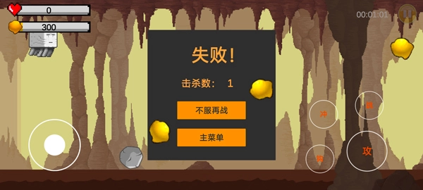 当角色生命值归零则游戏结束。