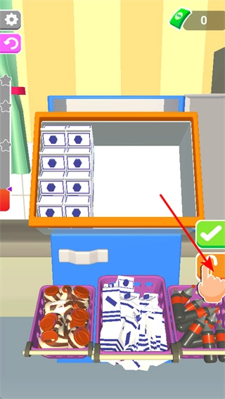 确认整理摆放完成,当所有物品都按类别整齐归置好后,点击确认按钮,即可完成本关卡的整理摆放任务。