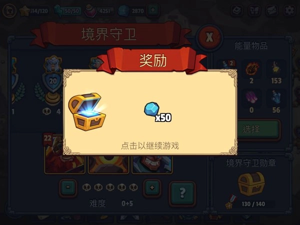 在境界守卫玩法里,每累计获取10枚勋章后开启宝箱,就能得到50颗宝石。