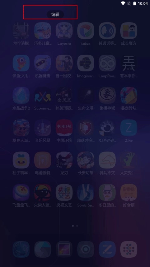 当用户点击“编辑桌”时,屏幕左上角会出现两个功能按钮,分别是个性化和页面管理。