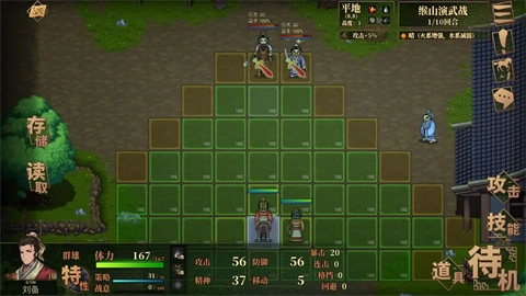 点击武将就能操控其行军位置,界面上可查看武将的详细信息与技能说明。每个回合只能选择一项操作(使用技能或发起攻击),完成后便结束当前回合!请依据实际战况对战棋策略进行调整。