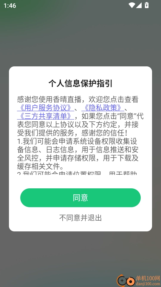 首先打开软件,阅读“个人信息保护指引”后,点击“同意”按钮即可进入。