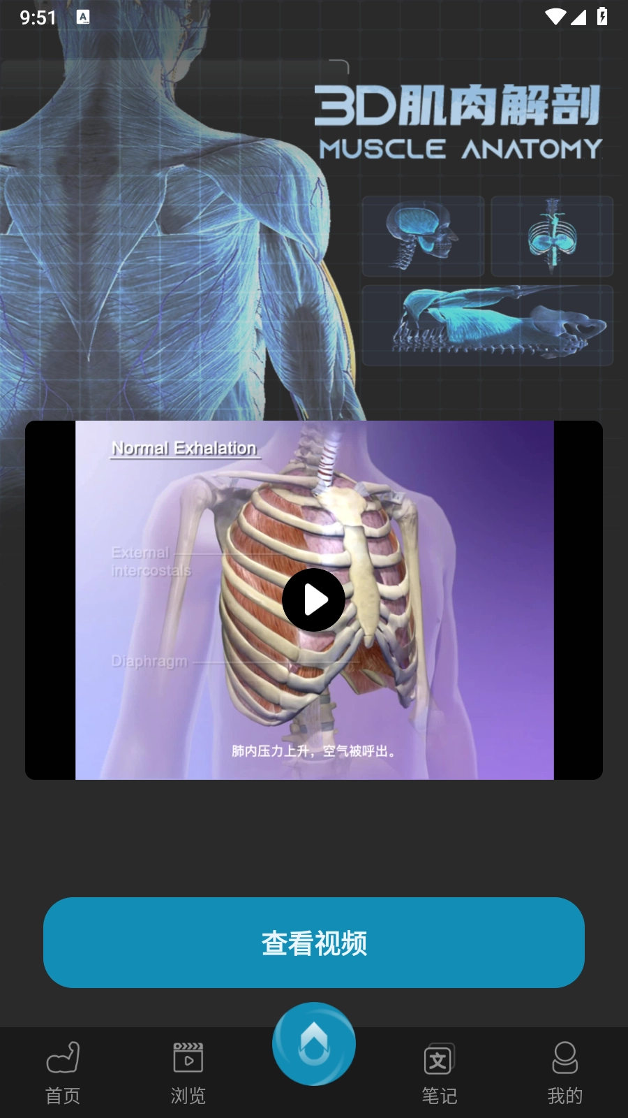 应用内的视频课程运用高质量3D动画技术打造出逼真的解剖场景模拟,让用户能更直观地掌握肌肉的结构与功能,呈现出高品质的3D视频体验。