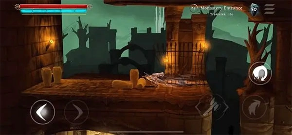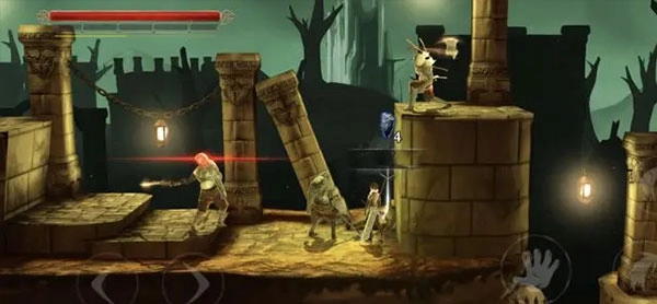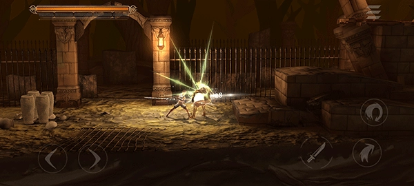 它的整体操作方式和横板闯关游戏相近,左侧负责控制移动方向,右侧则用来操控攻击、跳跃、冲刺等动作。