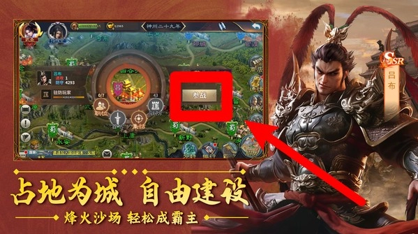 在主城界面点击征战地图,挑选目标地块后派遣武将去占领,就能轻松扩大领地范围。