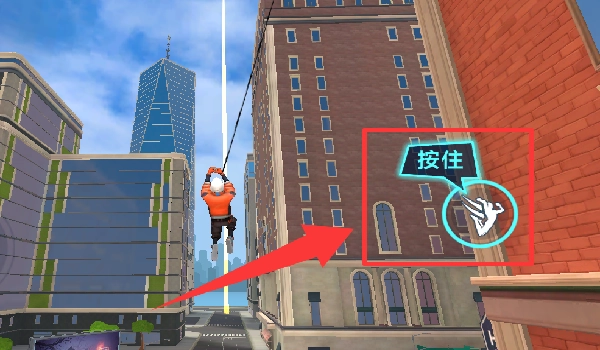 按住发射蜘蛛丝到前面那里抓住坏人。