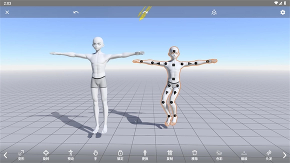 点击整个身体可以让角色旋转、移动、复制等。