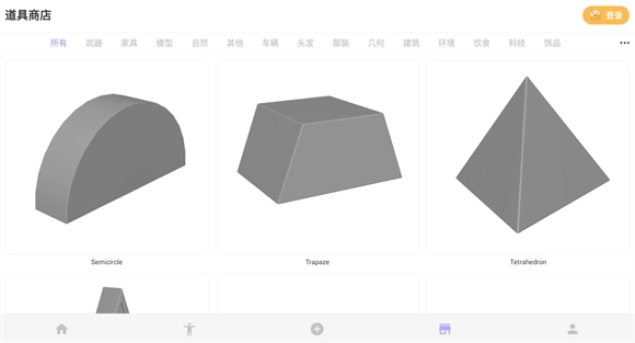 点击下方第四个按钮就能进入道具商店,商店里有不少模型可供购买和使用。