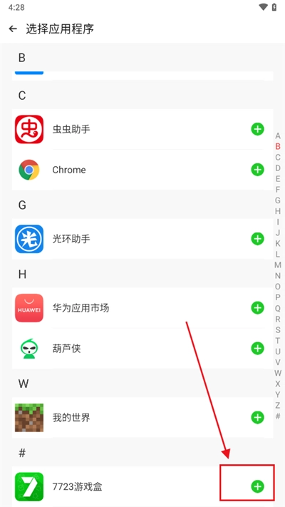 在软件首页点击右下角的“+”按钮,随后就能看到设备里安装的所有应用。
