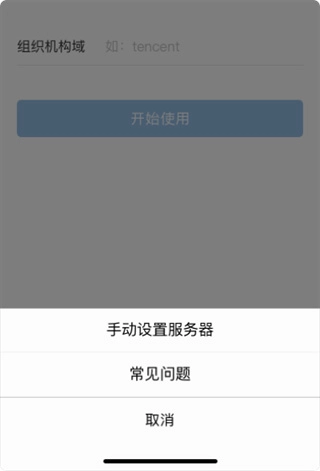 您可以通过填写「组织机构域」来快速配置所在企业的服务器。要是不清楚「组织机构域」的具体内容,可查看企业发送的短信获取相关信息。