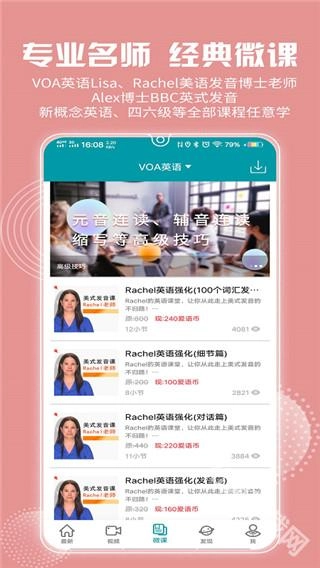 3、而在微课界面有着非常多的英语课程;