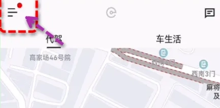 打开手机,登录【e代驾】,点击左上角的三横图标。