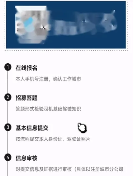 请先在微信里搜索“e代驾司机服务平台”并关注该公众号,进入公众号后找到“加入我们”选项,点击其中的“点击报名”,即可启动线上报名流程。