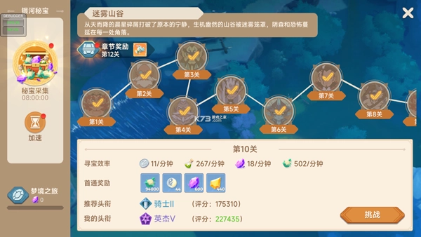 银河秘宝是一项单人参与的活动,参与该活动主要能够获得晨星碎屑(该道具可用于梦境之旅的派遣任务)以及经验等各类奖励。这一玩法采用逐层挑战的模式,挑战的层数越高,挂机所能带来的收益效率就越出色。玩家可以一直挑战到自身无法继续推进的关卡为止。
