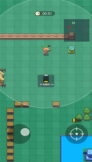 4、我们通过左手滑动怕屏幕来控制角色的行走,右手点击射击按钮来进行攻击,子弹数显示在攻击按钮上方,用完之后需要更换弹夹。