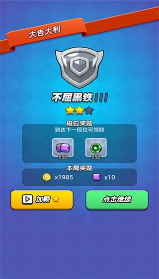 6、然后就会开始本局对战的结算,胜利后会获得段位奖励和本局奖励,同样也会提升玩家的段位,所以请加油吧!