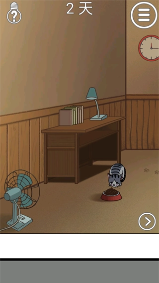 第四关:到左侧房间的书架上找到猫粮,把猫粮倒进碗里,然后等候猫咪过来。